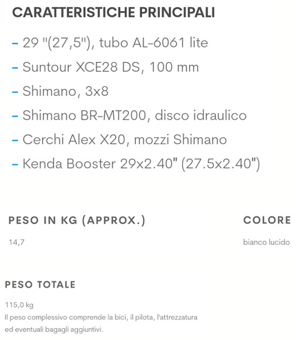 Il noleggio comprende: catenaccio di sicurezza, kit di riparazione pneumatici.
