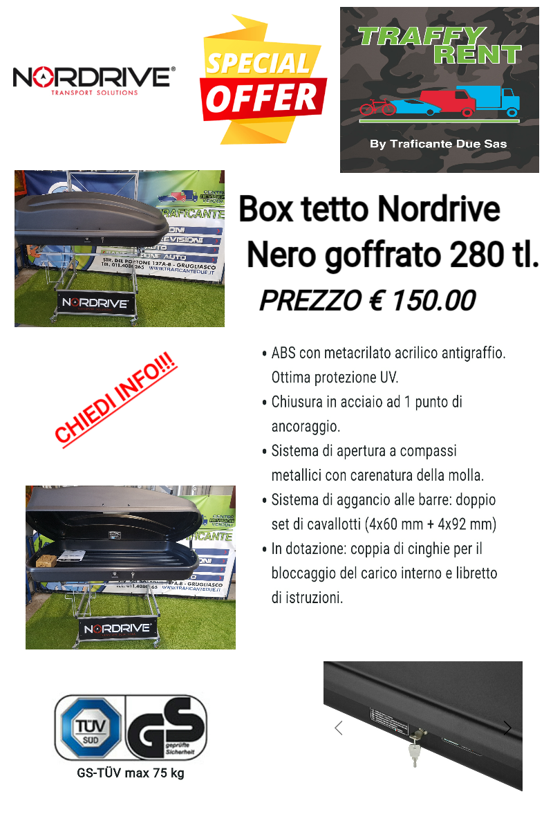 Disponibilità BOX TETTO NORDRIVE NERO GOFFRATO 280LT BOX TETTO A partire da € 30.00 Gennaio 2026 Febbraio 2026 Marzo 2026 Aprile 2026 Maggio 2026 Giugno 2026 Luglio 2026 Agosto 2026 Settembre 2026 Ottobre 2026 Novembre 2026 Dicembre 2026 Disponibile Alcune Unità Prenotate Non Disponibile Gennaio 2026 LunMarMerGioVenSabDom 01 02 03 04 05 06 07 08 09 10 11 12 13 14 15 16 17 18 19 20 21 22 23 24 25 26 27 28 29 30 31 Seleziona una data di ritiro e di consegna Luogo RitiroTRAFICANTE DUE S.A.S TRAFFY RENT Luogo ConsegnaTRAFICANTE DUE S.A.S TRAFFY RENT Data di Ritiro Ora Ritiro 09 10 11 12 13 14 15 16 17 18 : 00 15 30 45 Data di Consegna Ora Consegna 09 10 11 12 13 14 15 16 17 18 : 00 15 30 45